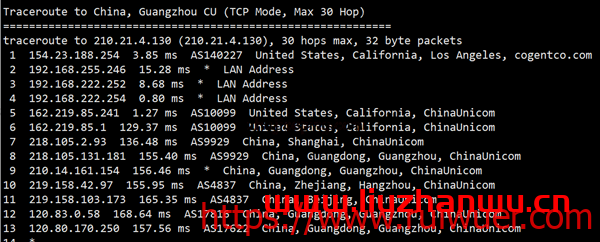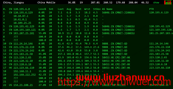 回程,到国内移动:我们发现走的是联通高端线路AS9929