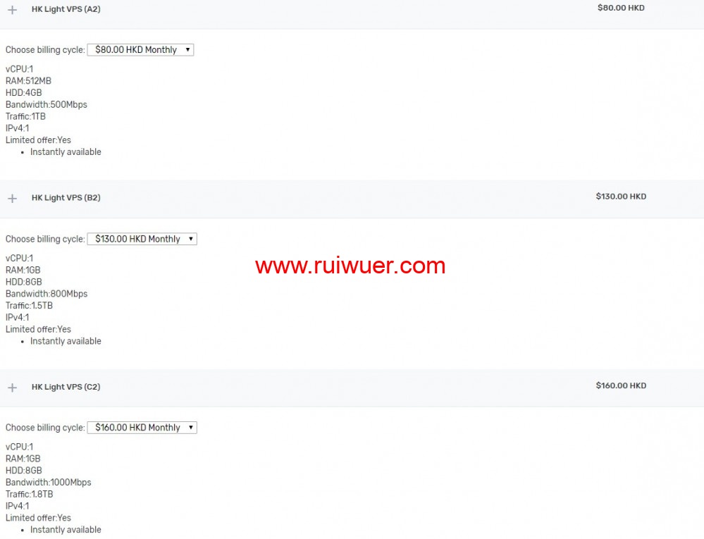 | 流量:1 TB / 月(500Mbps端口) | 流量:1.5 TB / 月(800Mbps端口) | 流量:1.8 TB / 月(1000Mbps端口) |