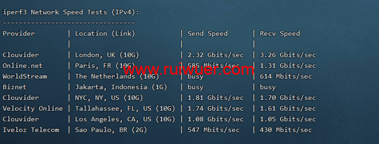 iperf3测试欧美速度