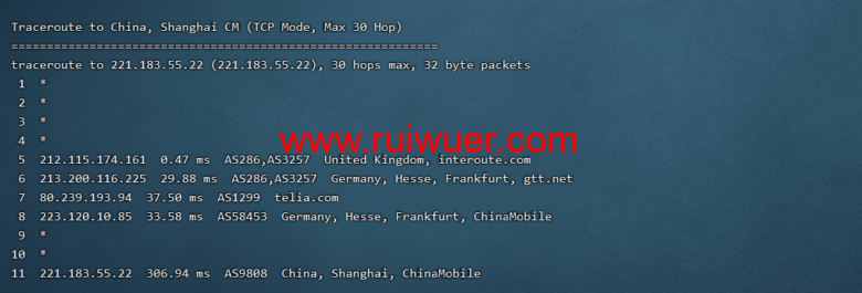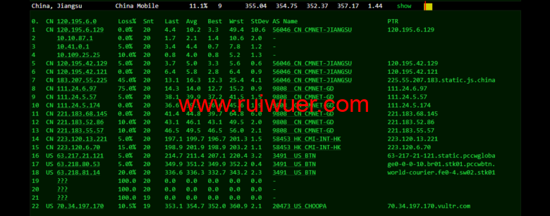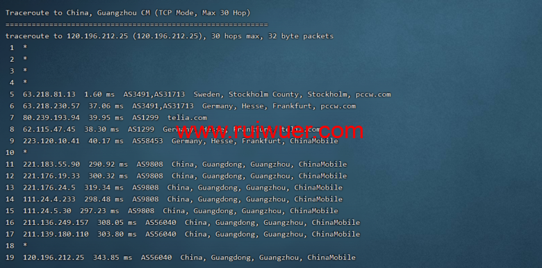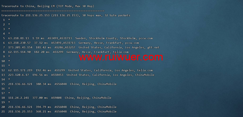 移动去程,cmi连香港cni,绕美国btn