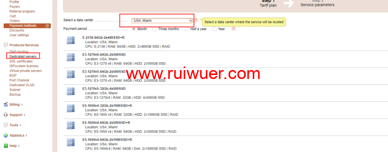 不知道从那里找的朋友登陆账号后进入后面,点击Products/Services—Dedicated servers–Order