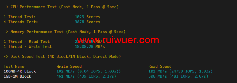 配置信息,cpu为E3-1240 V2,主频为3.4G,250G SSD,默认开启bbr测试,I/O测试平均为418MB/S