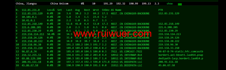 电信回程,北京方向level3对接骨干,上海广东方向comcast对接国内电信骨干