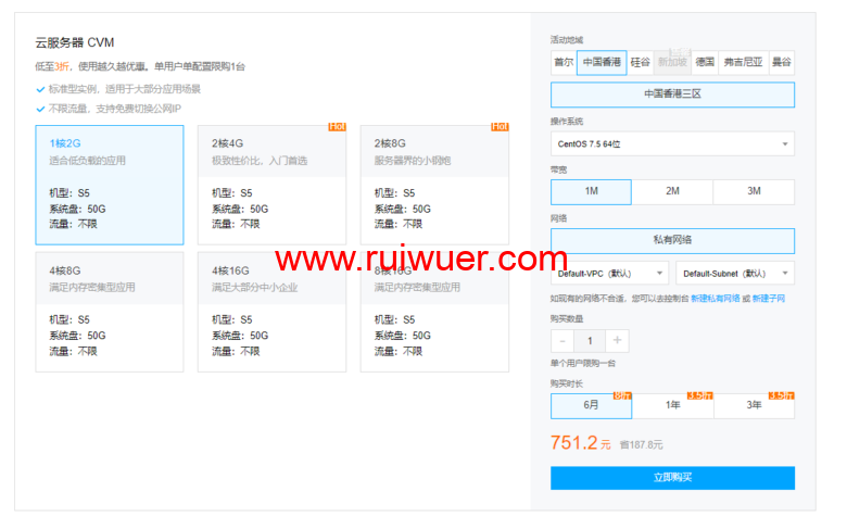 这里我们可以看到CVM云服务器包括上面的轻量服务器是针对新老用户都可以选择的。腾讯还算良心,老用户也有给一些力度优惠。三年是比较划算的三五折左右。