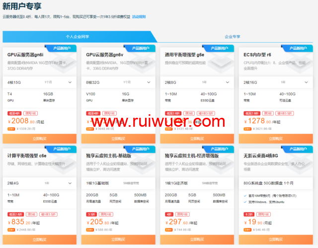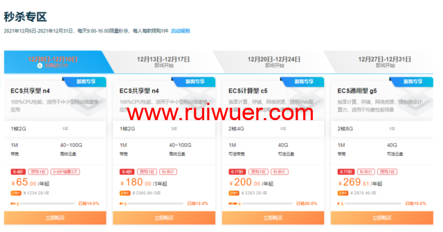阿里云是一家国内的大厂IDC,阿里巴巴旗下的子公司,销售的产品非常齐全,近期商家推出了年终特惠,商家推出了一个秒杀专区,目前比较超值的就是1核2G的套餐,三年仅需要180元,这个套餐估计就是应对腾讯云那个189三年的套餐的,除了秒杀活动,针对企业用户也有相应的优惠套餐,另外这次也给老用户一些福利,续费35折起,阿里云的服务器非常适合做站。
