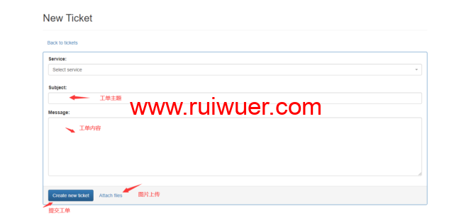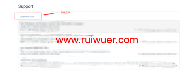 此外,点击上图的 Open new ticket,还可以新建工单,具体如下。