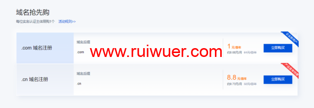 本活动每个域名产品每位腾讯云实名认证主体限购一个;其中“企业新用户”商品仅限产品新企业用户(该产品无订单记录或累计订单金额为0)购买, “产品首单特惠”商品仅限产品新用户(该产品无订单记录或累计订单金额为0)购买。提交未支付订单不影响购买额度
