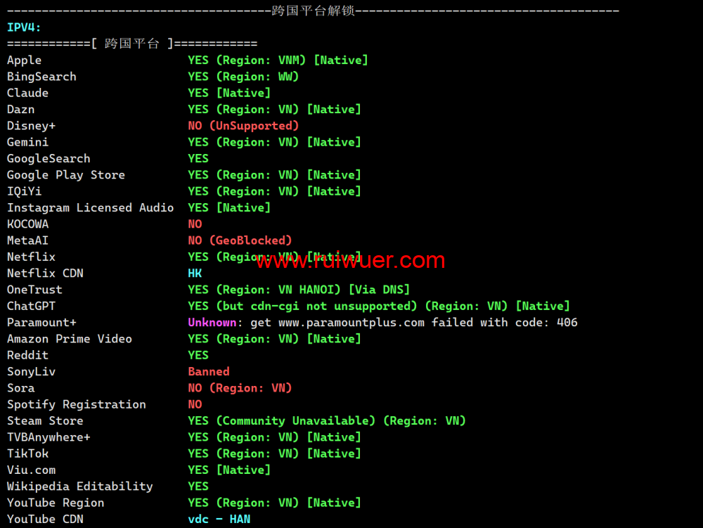 流媒体解锁测试: