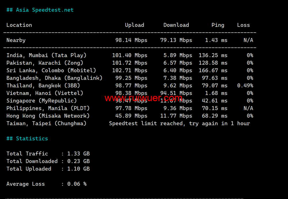 SpeedTest.Net的亚洲节点的速度测试: