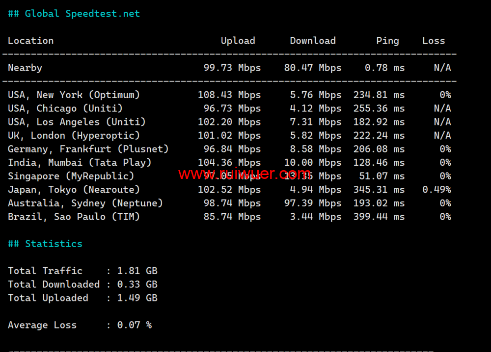 SpeedTest.Net的国际节点的速度测试::