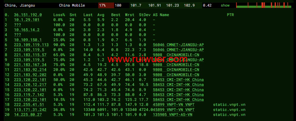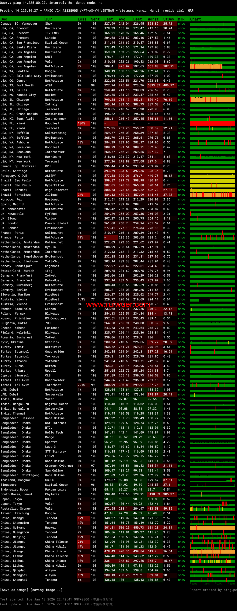 全球ping.pe丢包测试: