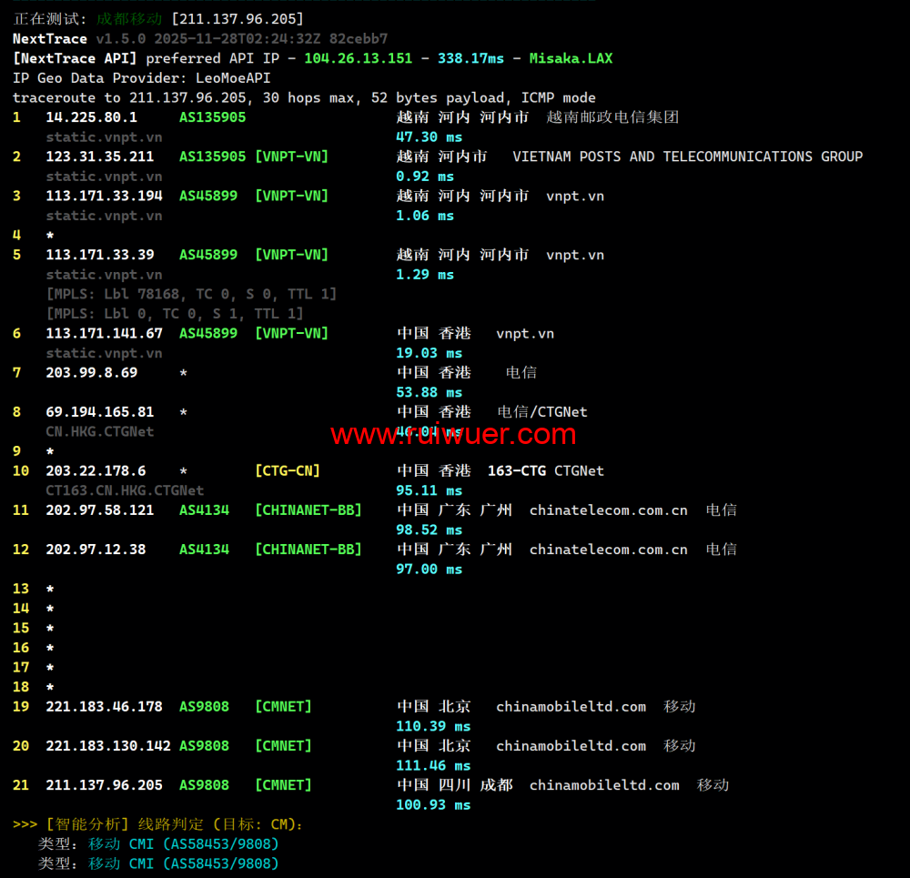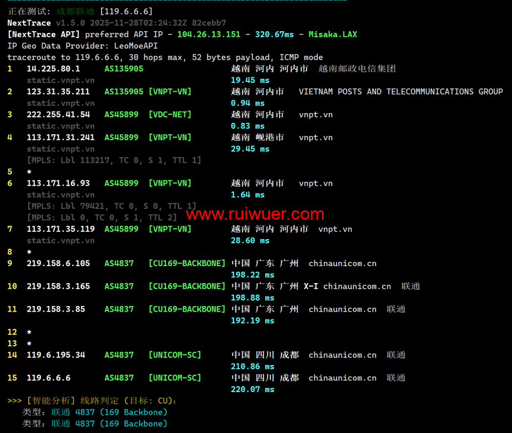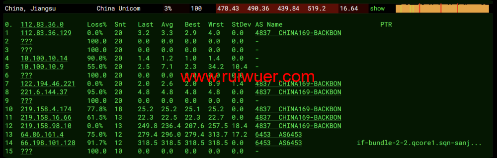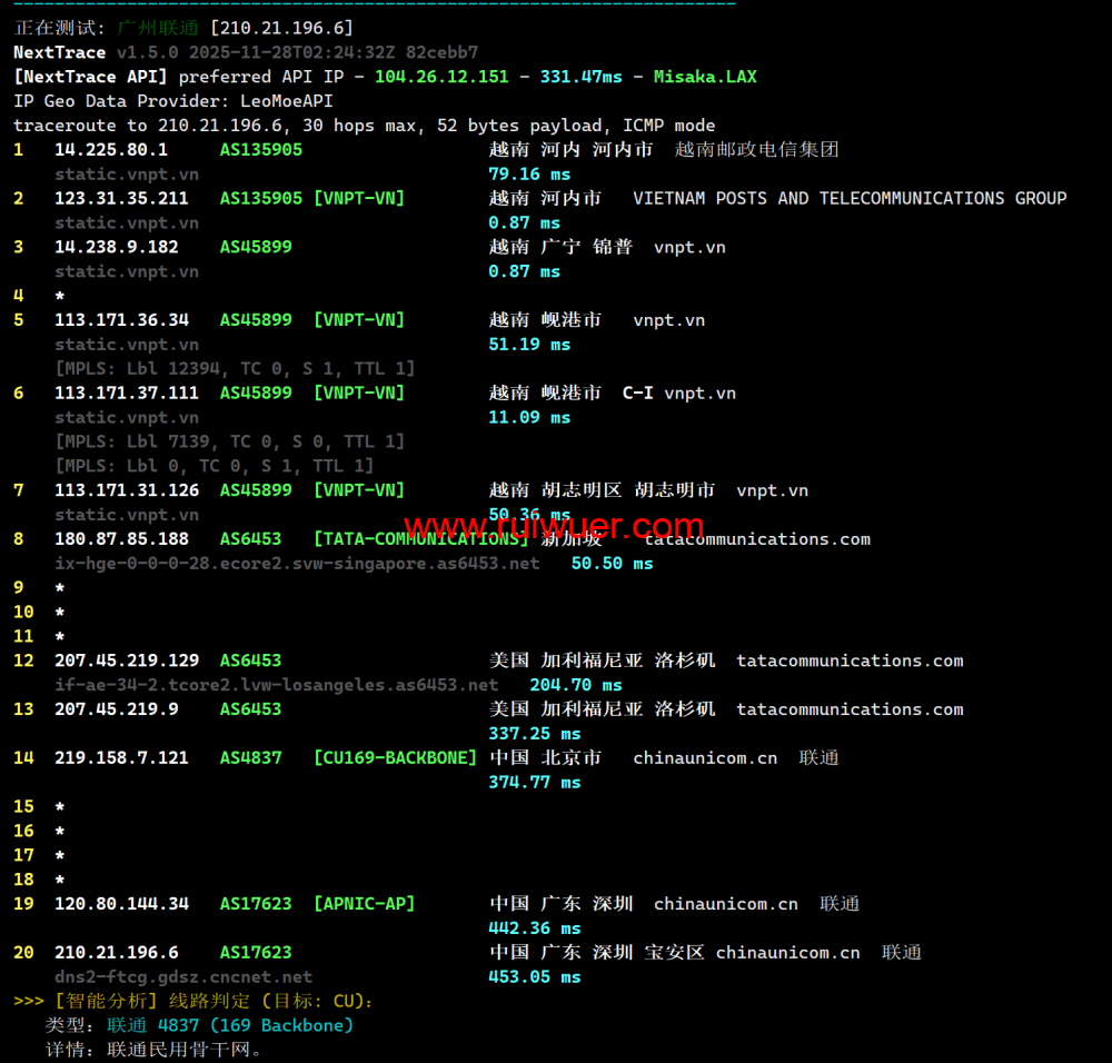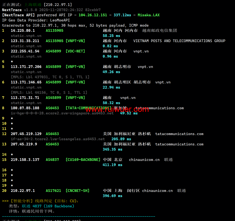 联通回程测试: