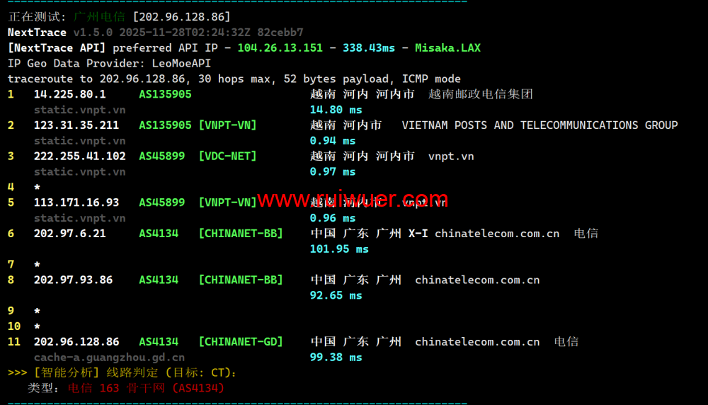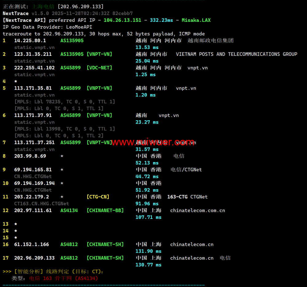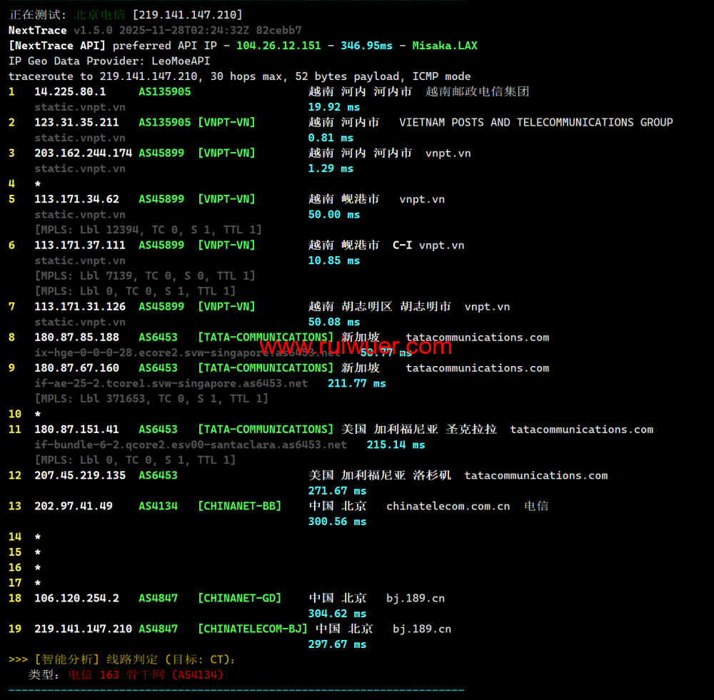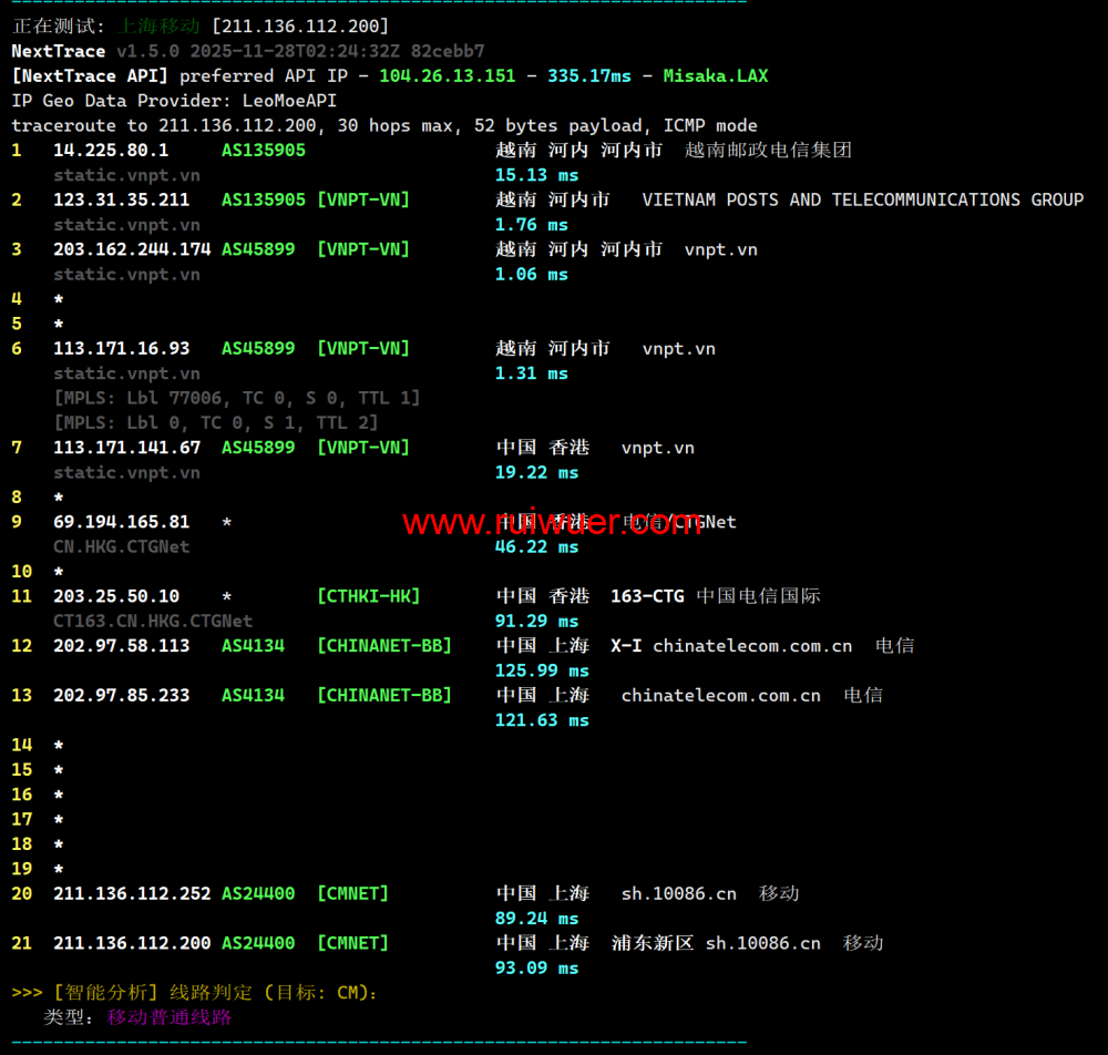 联通回程测试: