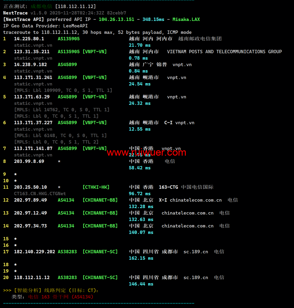 电信回程测试: