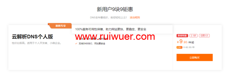 阿里云怎么样,阿里云DNS新春特惠,新客秒杀仅需要9.9一年,续费升级7.5折起,有需要的可以了解一下