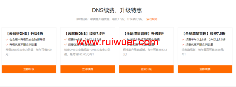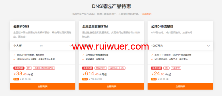 DNS全系产品7.5折起,优惠不限新老用户、不限实例购买数量。
