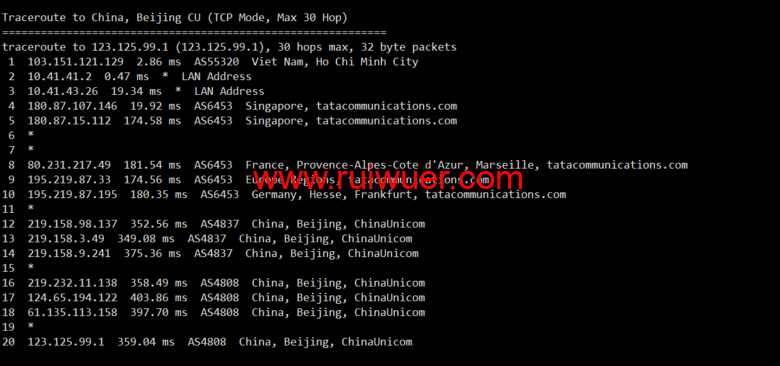 联通去程绕美国到机房