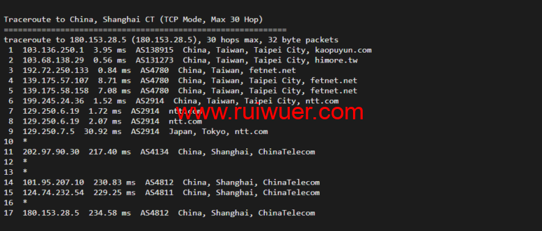回程,到国内电信,北京方向直连,上海广州方向走ntt线路回国