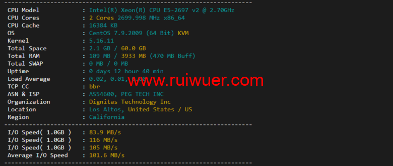 配置信息:cpu为e5-2697v2,开启bbr测试,i/o平均为101MB/s