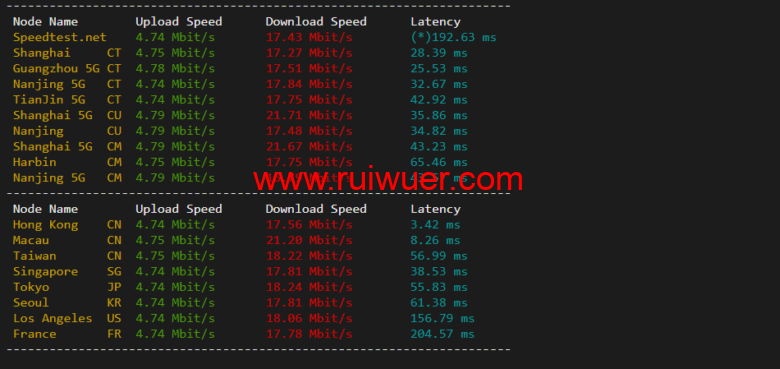 speedtest.net国内国外上行下行测试