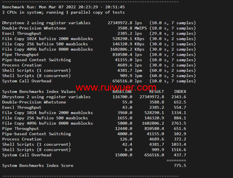 Unix bench Mark跑分