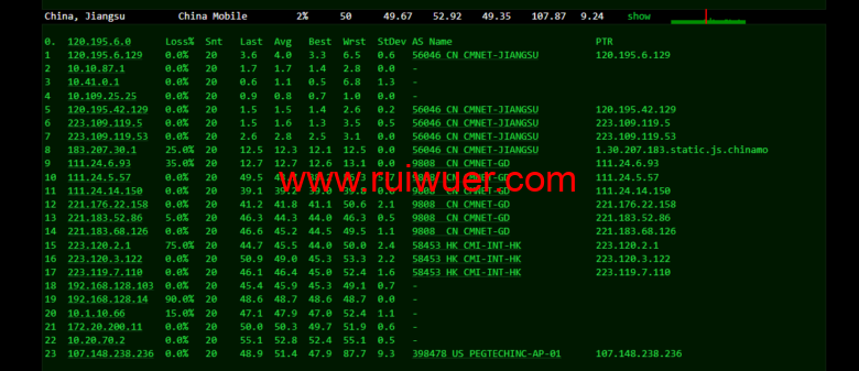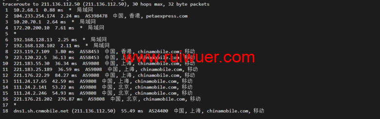 回程,到国内移动,骨干直连