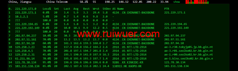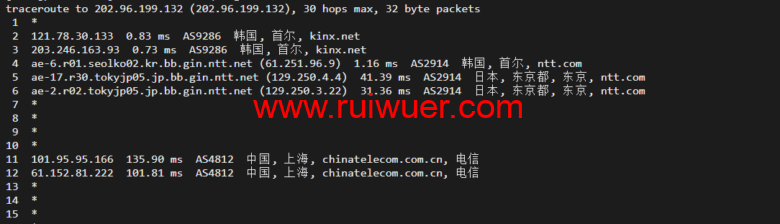 回程,到国内电信,北京方向直连,上海、广东方向绕日本ntt线路回国