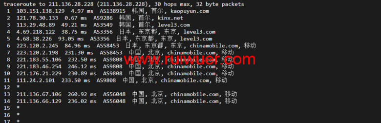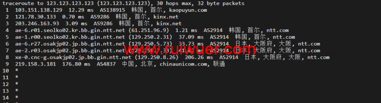 回程,到国内联通,北京方向绕日本回国,广州方向走联通as4837回国