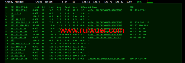 回程,到国内电信,走cn2