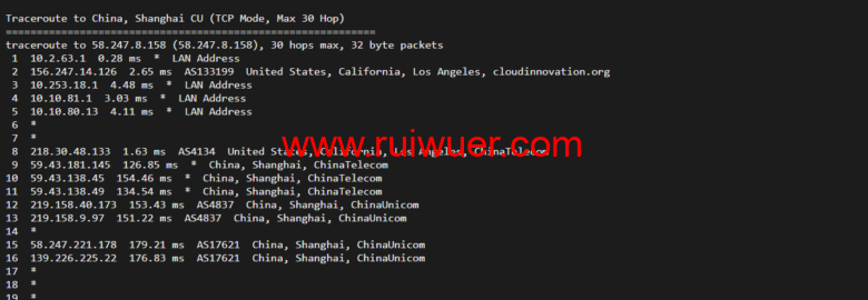 回程,到国内联通,走cn2