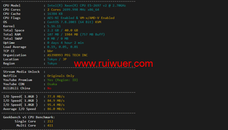 今天我们来测试一下raksmart日本云服务器,精品网络看看性能怎么样,还有流媒体解锁的情况。
