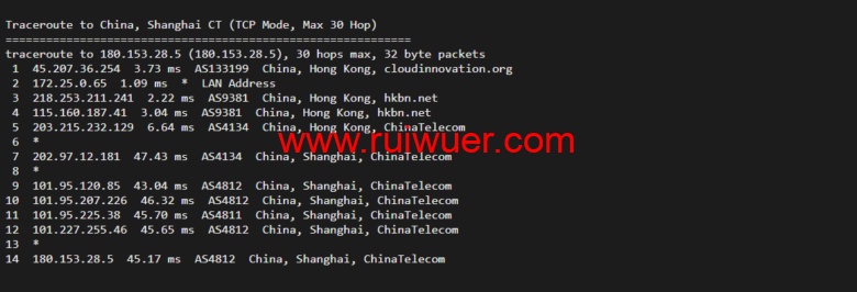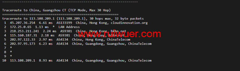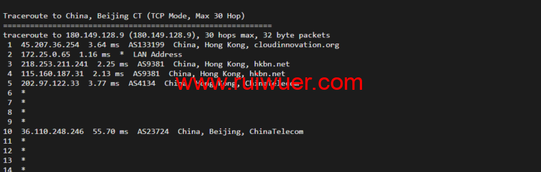 回程,到国内电信,直连