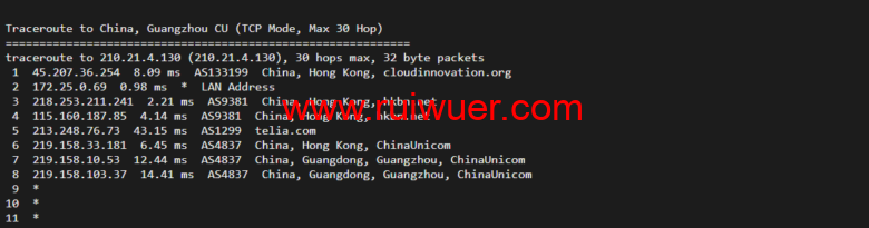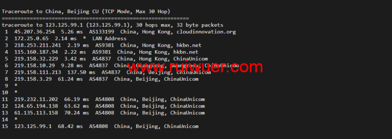 回程,到国内联通,直连