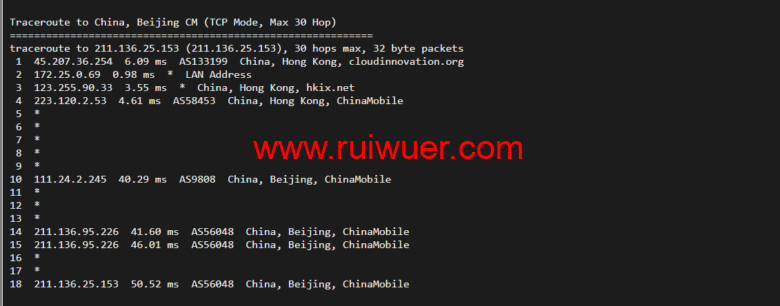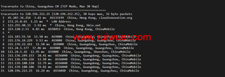 回程,到国内移动,直连