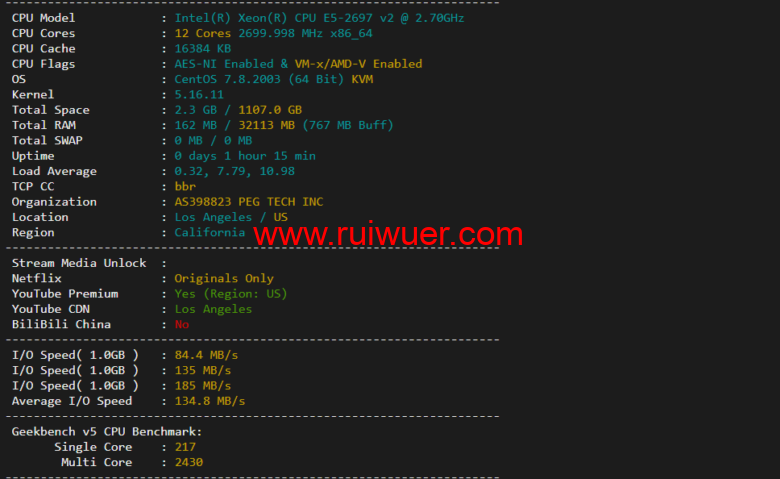 raksmart目前裸机云产品推出7折优惠,有需要的可以围观一下,下面为大家测评一下raksmart洛杉矶机房裸机云,大陆优化线路,了解一下机器性能、流媒体解锁等