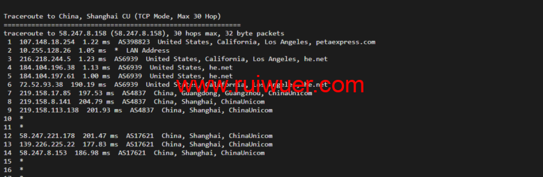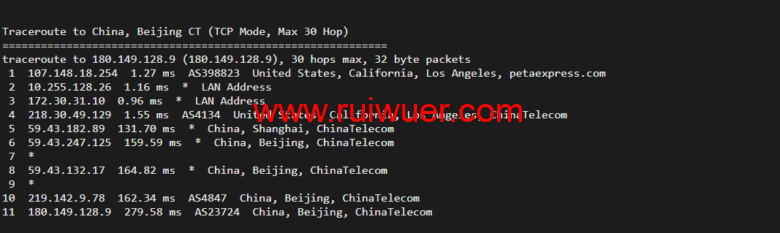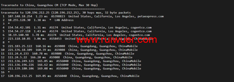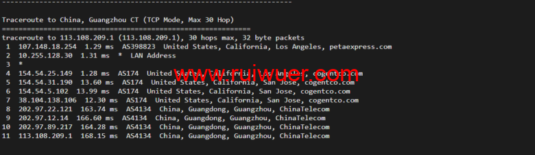 回程,到国内电信,北京上海方向走cn2,广州方向直连
