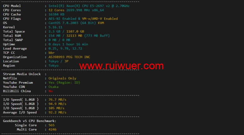 raksmart目前裸机云产品推出7折优惠,有需要的可以围观一下,下面为大家测评一下raksmart日本机房裸机云,大陆优化线路,了解一下机器性能、流媒体解锁等