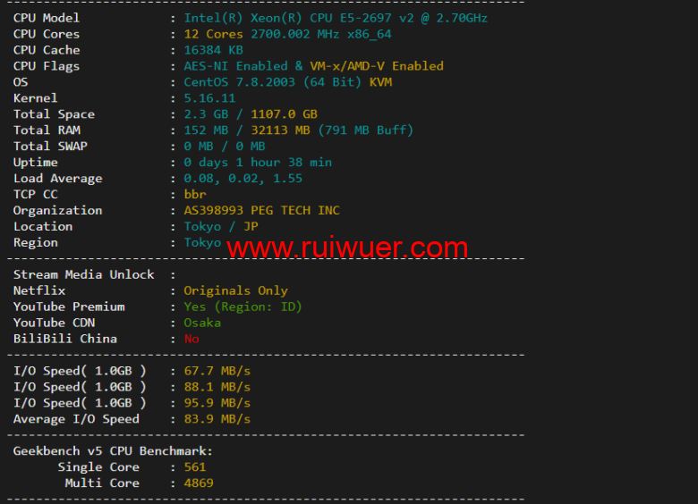 raksmart目前裸机云产品推出7折优惠,有需要的可以围观一下,下面为大家测评一下raksmart日本机房裸机云,精品网线路,了解一下机器性能、流媒体解锁等