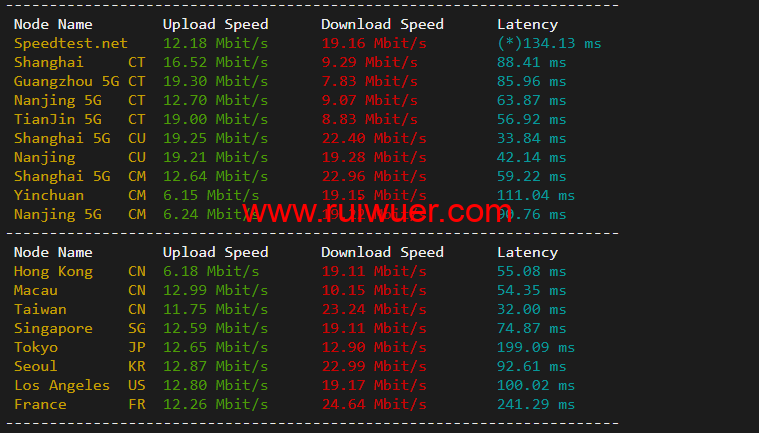 speedtest.net国内国外上行下行测试