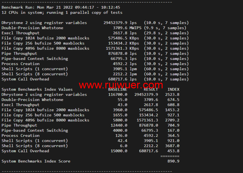 Unix bench Mark跑分