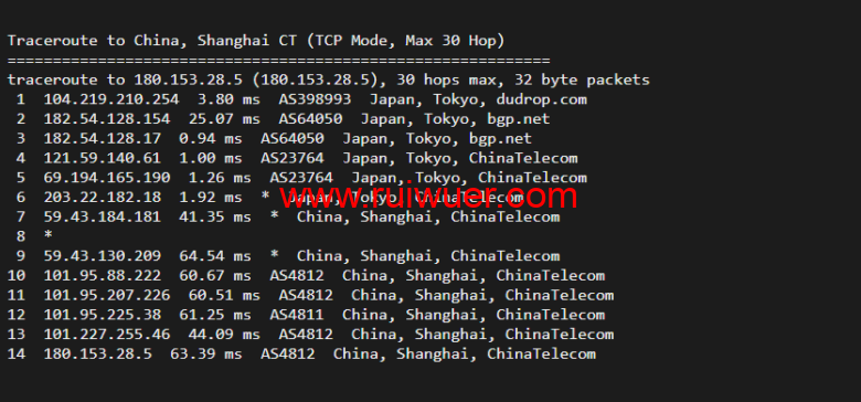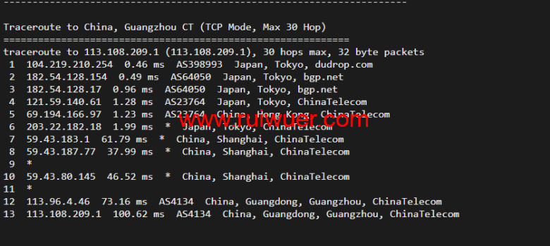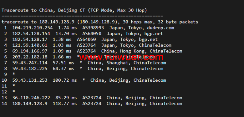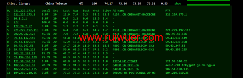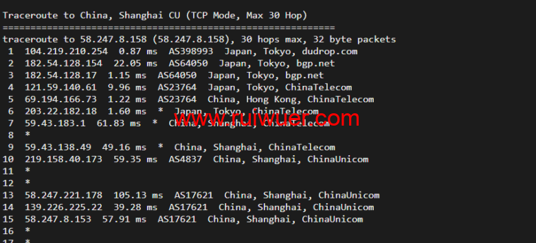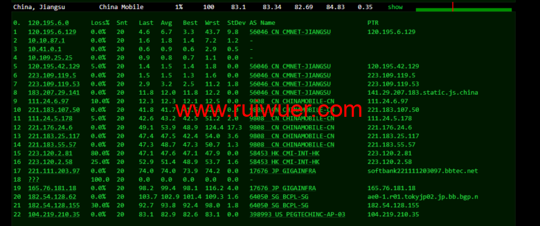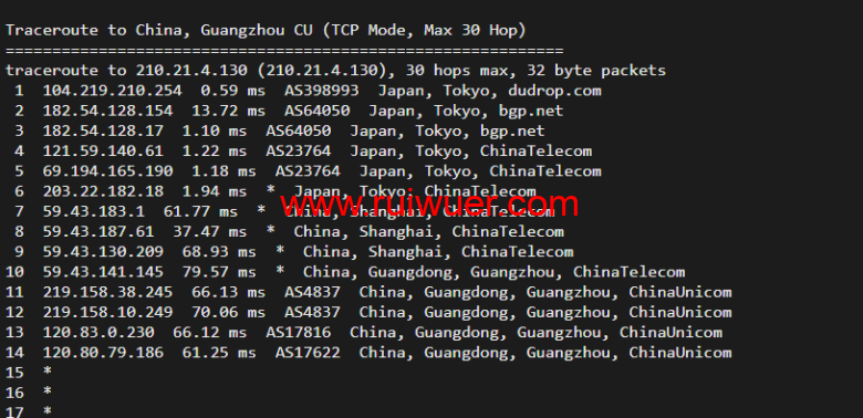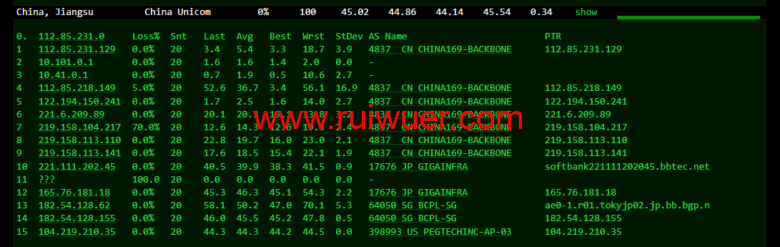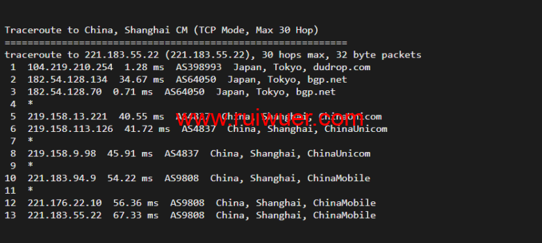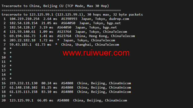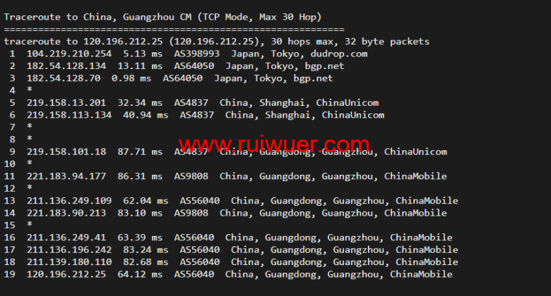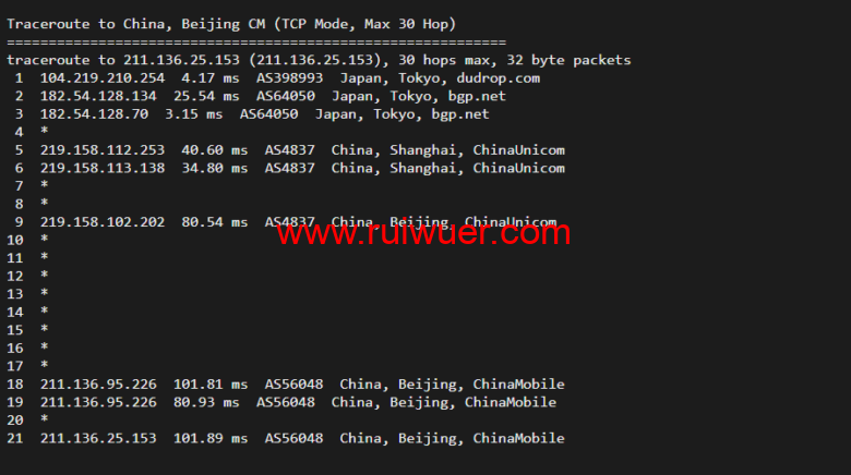 回程,到国内移动,走联通as4837线路回国