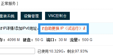如果七五折优惠码过期了的话请使用8折优惠码,均为终身折扣,续费同价。傲游主机提供的VPS支持Linux或者Windows操作系统,这个自助换IP目前支持KVM主机,用户使用中可以自行付费更换IP,如下图: